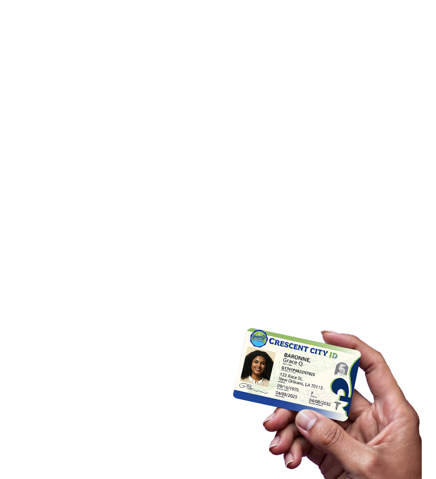 The Crescent City ID is the official photo ID for all residents of New Orleans. It helps make our city more welcoming. It also gives everyone easier access to city services and local businesses.