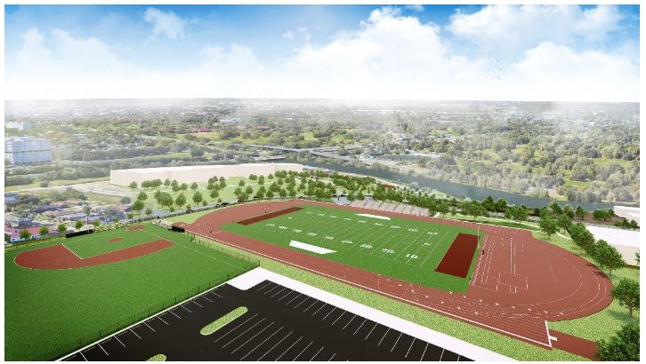 The HUD-funded Phase I of the project will begin with construction of an underground stormwater detention system capable of storing up to five million gallons of water—the largest of its kind in the American South. Built beneath new athletic fields, this innovative infrastructure will significantly reduce neighborhood flooding and improve local drainage capacity.