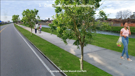 Shared-use Walk and bike trails along the North and South Service Roads of I-10 between Dwyer Road and Vincent Canal near I-510