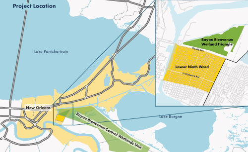 Prior efforts by the U.S. Army Corps of Engineers, the US Environmental Protection Agency (EPA), and the Coastal Wetlands Planning, Protection, and Restoration Act (CWPPRA) have laid important groundwork, as have locally driven efforts by the Pontchartrain Conservancy and others. Yet, the complexity of restoring the entire BBWT—due to landownership fragmentation and scale—has prevented comprehensive implementation. The surrounding community, particularly the Lower 9th Ward, remains highly vulnerable to flooding, with limited access to resilient natural infrastructure.